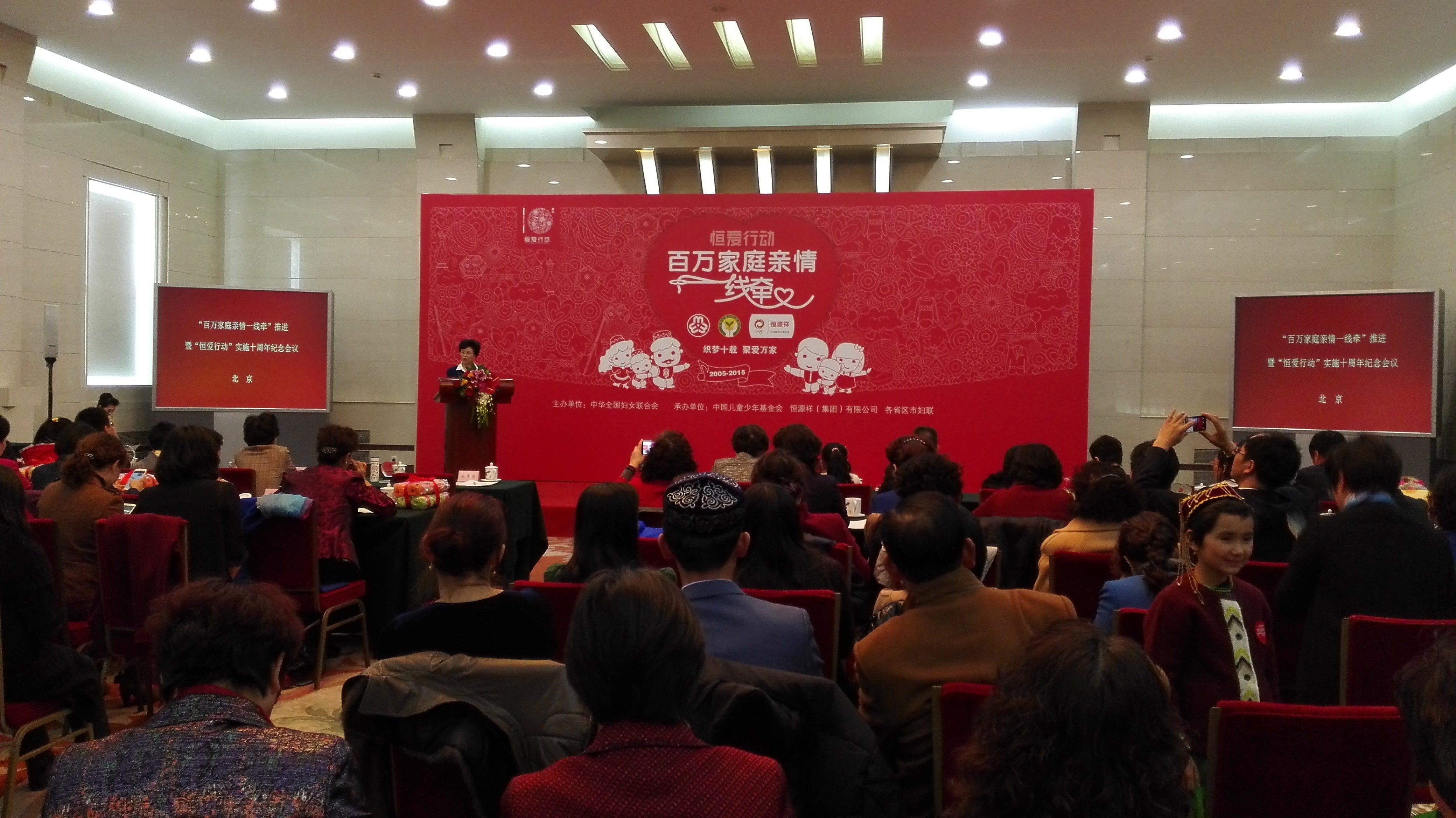 近期,青海省妇联副主席王桂芹与儿童部干部参加了由全国妇联、中国儿童少年基金会、恒源祥共同主办的“百万家庭亲情一线牵”推进暨“恒爱行动”实施十周年纪念会议,会议在人民大会堂河南厅隆重举行。出席活动的有全国妇联党组书记、副主席、书记处第一书记、中国儿童少年基金会理事长宋秀岩,全国人大常委会委员、内务司法委员会副主任委员、中国儿童少年基金会副理事长陈秀榕,全国妇联副主席、书记处书记、中国儿童少年基金会副理事长赵东花,以及各省区市及新疆生产建设兵团妇联、中央直属机关、中央国家机关各单位妇工委、香港紫荆社、爱心家庭和媒体代表约200人。